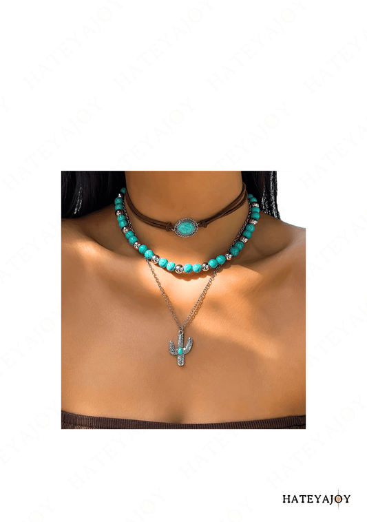 Collier Bohème Perles Bleues Cactus