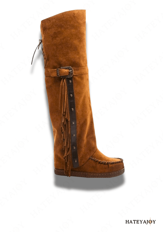 Ceinture Boho Daim Franges Oeillets